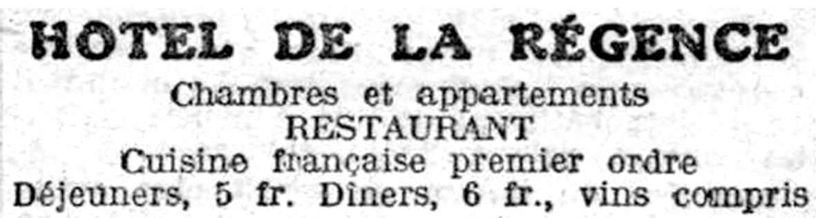 “Khách sạn đứng đầu ở Alger “La Régence” trông giống như là một cung điện vì nó rộng và khang trang. Đây là nơi các Tướng Tá Pháp ở khi đến Alger nhưng giá lại tương đối cao”.