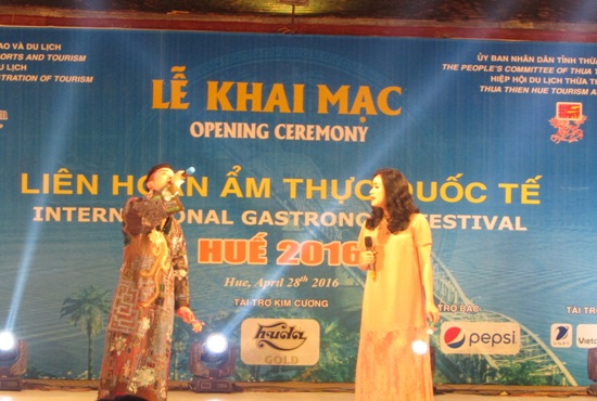 Tối 28/4, tại Nghinh Lương Đình đã diễn ra lễ khai mạc Liên hoan Ẩm thực quốc tế - Huế 2016.