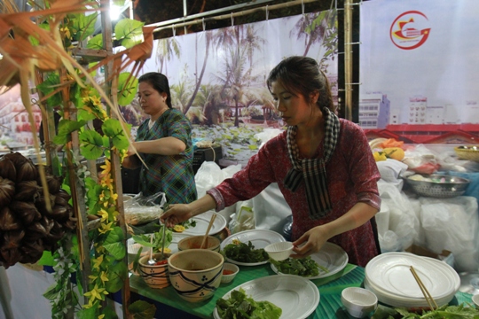 | Đoàn Quảng Nam mang món ăn Mì Quảng làm bằng thủ công giới thiệu đến du khách |