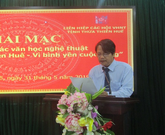 Nhà văn Hồ Đăng Thanh Ngọc - Chủ tịch Liên hiệp các Hội VHNT TT Huế - Tổng Biên tập Tạp chí Sông Hương phát biểu khai mạc trại