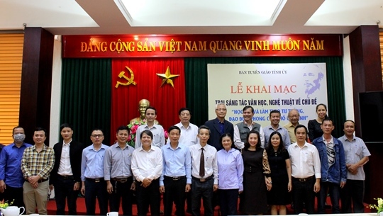 | Ban tổ chức Trại cùng các văn nghệ sĩ tham gia trại sáng tác chụp hình kỷ niệm |
