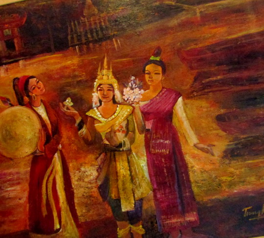 Dịp này, Trung tâm Nghệ Thuật Lê Bá Đảng & Điềm Phùng Thị cũng trưng bày cụm tác phẩm “Dòng sông đăng và nón bài thơ” của họa sĩ Hoàng Phi Hùng.