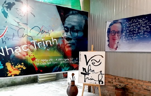 Dịp này, Trung tâm Nghệ Thuật Lê Bá Đảng & Điềm Phùng Thị cũng trưng bày cụm tác phẩm “Dòng sông đăng và nón bài thơ” của họa sĩ Hoàng Phi Hùng.