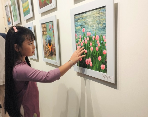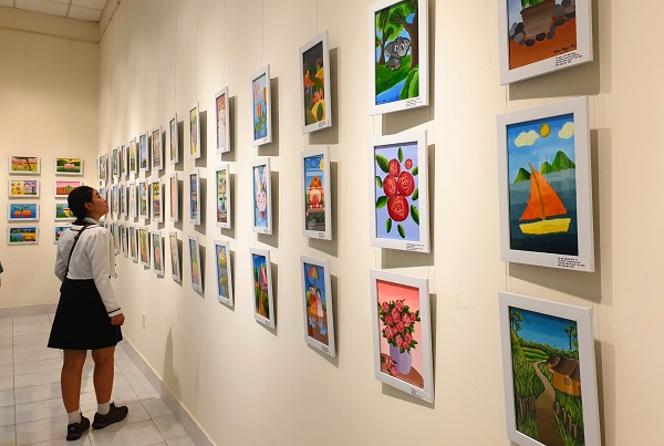 Triển lãm giới thiệu đến những người yêu nghệ thuật 195 tác phẩm của 159 họa sỹ thiếu nhi sáng tác, được thể hiện trên các chất liệu acrylic, khắc gỗ, màu nước và than...