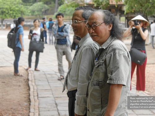 | Ông Phan Công Tuyên - Trưởng ban Tuyên giáo Tỉnh ủy ( trái) và họa sĩ Đặng Mậu Tựu - Chủ tịch Liên hiệp các Hội VHNT Thừa Thiên Huế. |