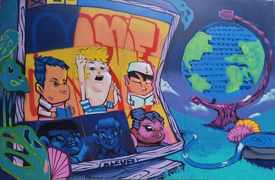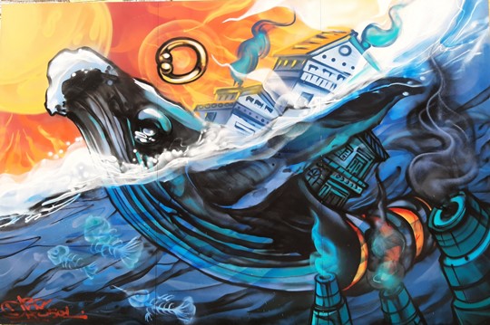Những tác phẩm được minh họa bằng sơn phun, đất sét, mực và các công cụ kỹ thuật số và lồng ghép những thông điệp tích cực vào các tác phẩm của mình một cách khéo léo.
