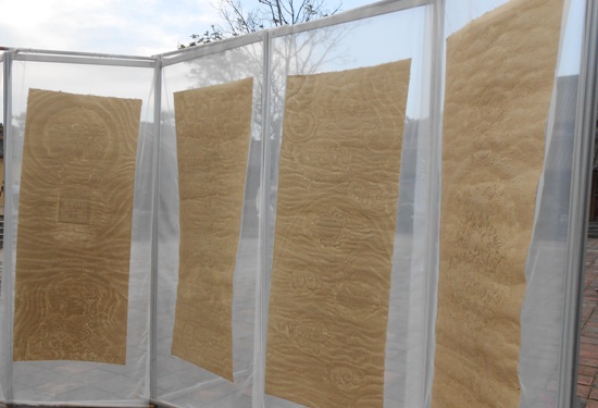 | Các bức Đồ họa Trúc chỉ được sắp đặt ngoài trời, trong khuôn viên sân Điện Cần Chánh |