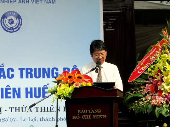 NSNA Vũ Quốc Khánh - Chủ tịch Hội Nghệ sĩ Nhiếp ảnh Việt Nam phát biểu khai mạc Liên hoan ảnh Bắc Trung Bộ lần thứ XXV - 2018 |