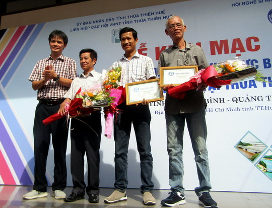 | Nhà văn Hồ Đăng Thanh Ngọc - Chủ tịch Liên hiệp các hội VHNT Thừa Thiên Huế và NSNA Lý Hoàng Long - Chủ tịch Hội đồng nghệ thuật Hội nghệ sĩ Nhiếp ảnh Việt Nam trao 03 Huy chương đồng cho các tác giả đạt giải |