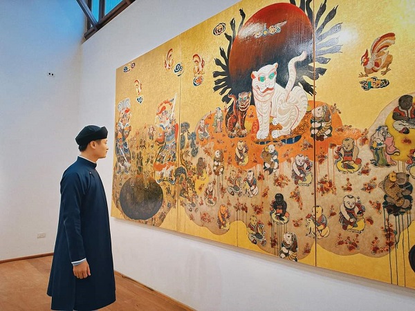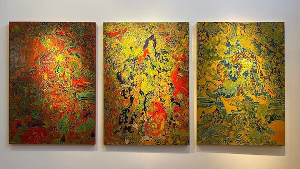 Ở mỗi bức tranh: “Mặt Phật”, “Cõi nhân gian”, “Vũ trụ”, “Xứ An Nam”, “Yêu”, “Vườn xuân”..., người xem có thể nhận ra vẻ đẹp từ màu sắc của chính bàn tay tác tạo. Ở đó, mọi chiều kích thời gian và không gian biến mất, không có gì đằng sau ngoài nỗi hoan ca vũ trụ sinh sôi. Ở đó, thẩm mỹ và nghệ thuật trở thành một đam mê vô tận.