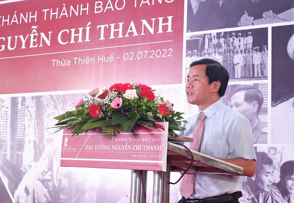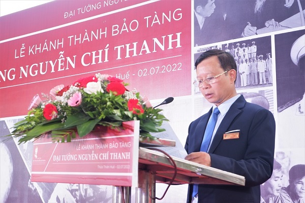 | Ông Phạm Văn Phi, Giám đốc Bảo tàng Đại tướng Nguyễn Chí Thanh phát biểu tại lễ khánh thành |