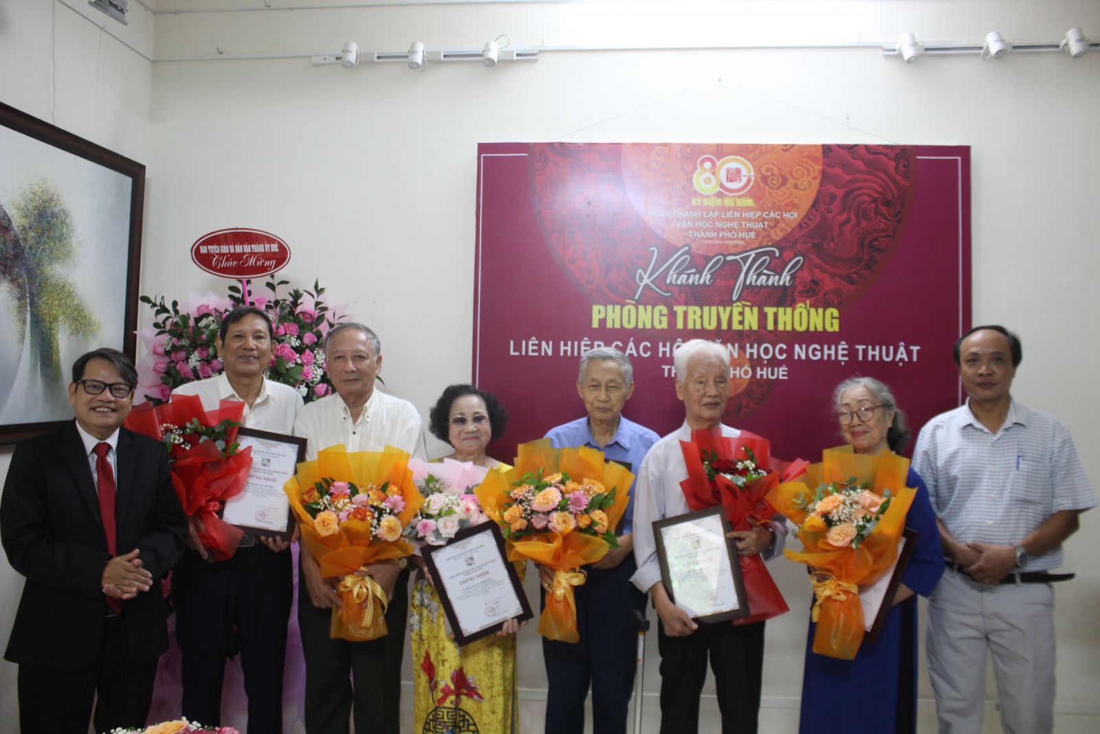 | Trao giấy chứng nhận cho các cá nhân đóng góp tư liệu, hiện vật cho phòng Lưu niệm Văn học Nghệ thuật Huế |