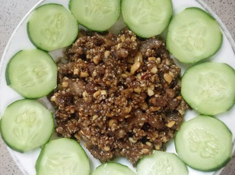 Món ruốc sả với hương vị béo béo, bùi bùi, đậm đà và hơi cay đúng chất Huế rất bình dị và ngon miệng.