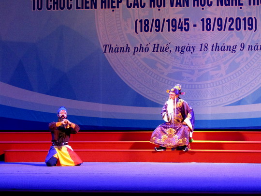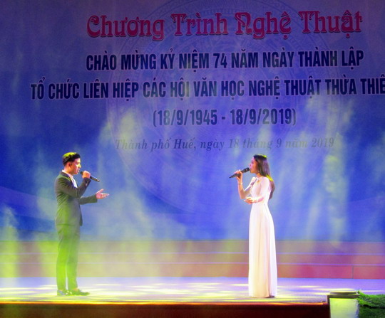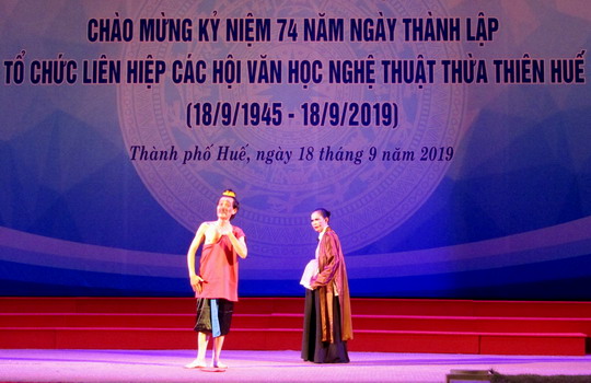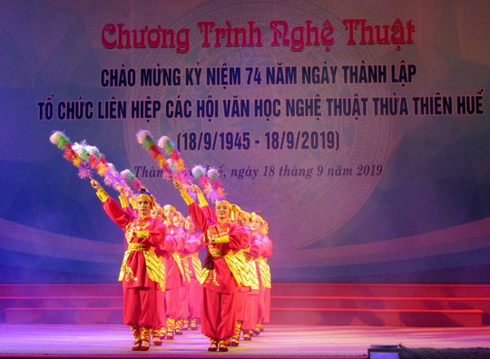 Tối 18/9, tại Trung tâm Văn hóa Thông tin tỉnh, Liên hiệp các Hội Văn học nghệ thuật Thừa Thiên Huế phối hợp với Hội Nghệ sĩ Sân khấu và Nhà hát Nghệ thuật Truyền thống Cung đình Huế đã tổ chức chương trình nghệ thuật nhằm chào mừng kỷ niệm 74 năm ngày thành lập tổ chức Liên hiệp Hội (18/9/1945 - 18/9/2019).
