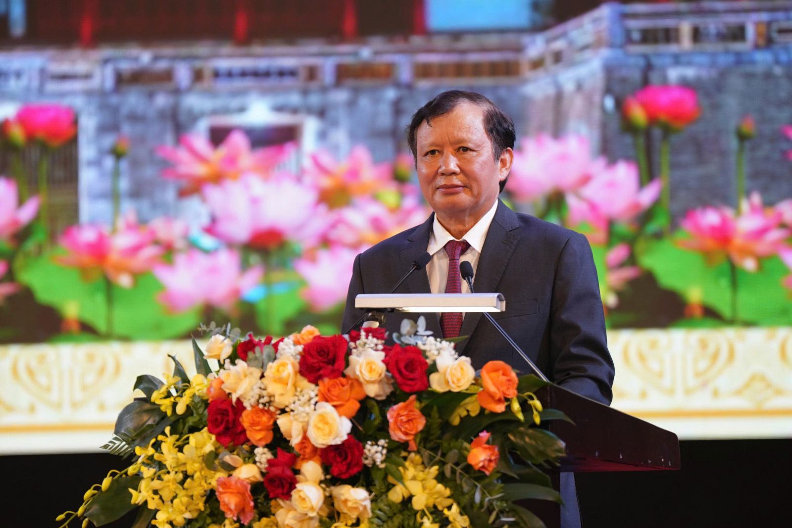 | Đồng chí Lê Trường Lưu, Ủy viên Ban Chấp hành Trung ương Đảng, Bí thư Thành ủy, Chủ tịch HĐND, Trưởng Đoàn đại biểu Quốc hội thành phố phát biểu tại Lễ kỷ niệm |