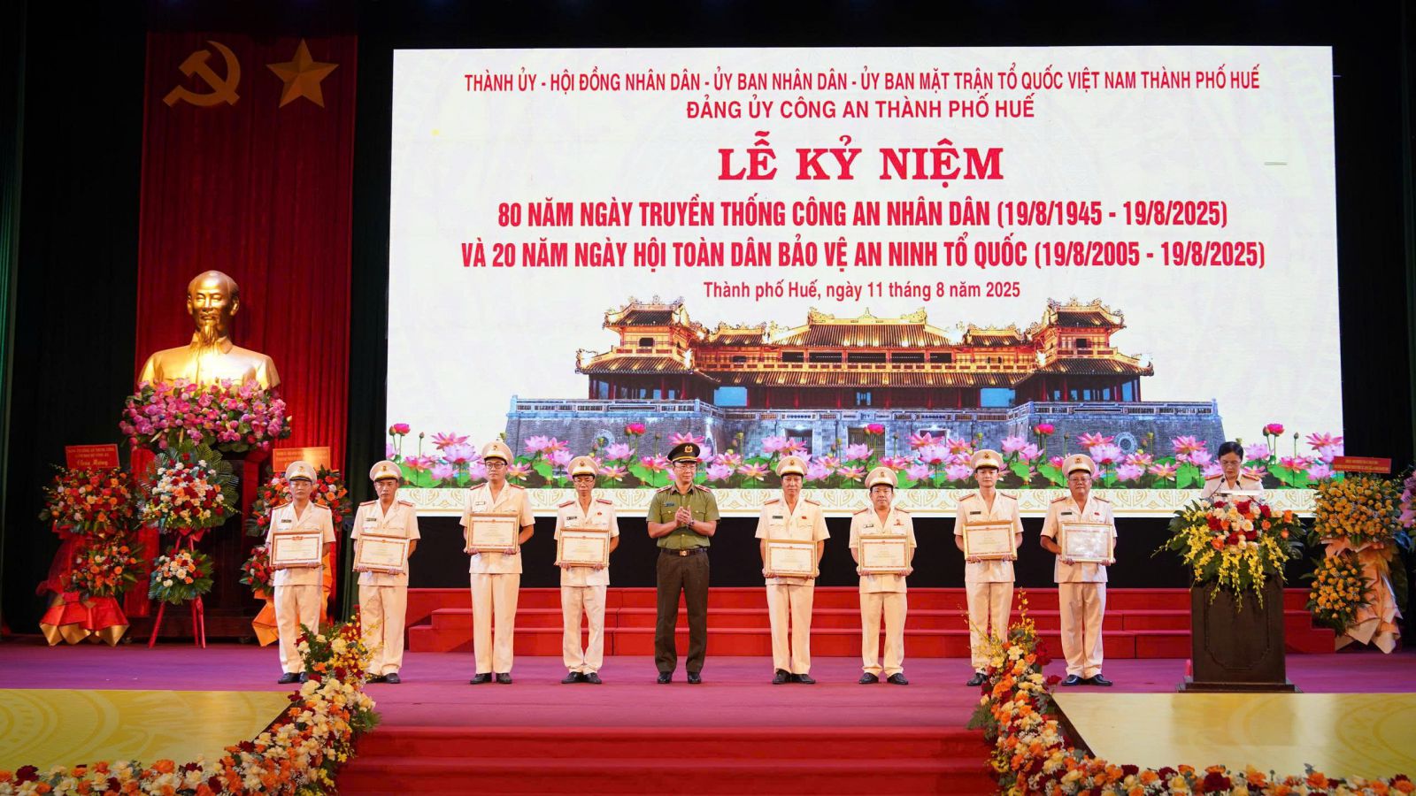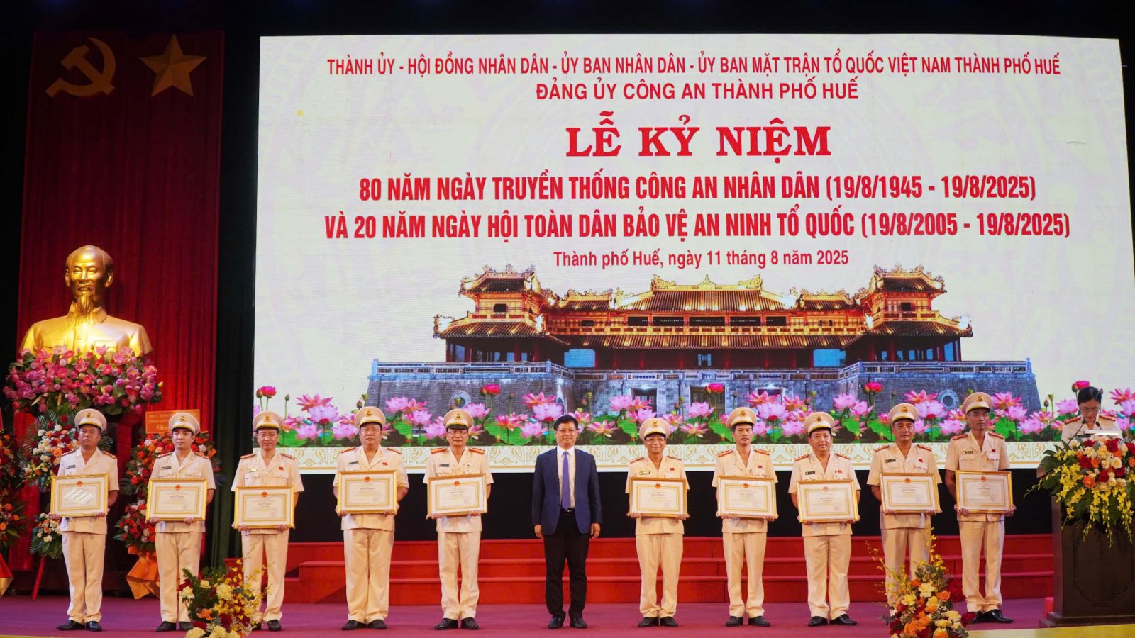 Cũng tại Lễ kỷ niệm, Công an thành phố có 7 tập thể và 11 cá nhân được nhận Bằng khen của Bộ Công an và Bằng khen của Chủ tịch UBND thành phố Huế.