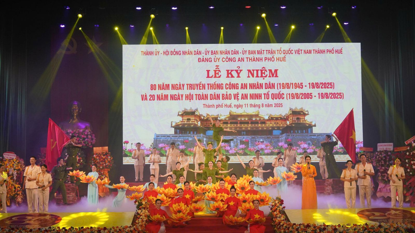 Tại lễ kỷ niệm, thay mặt Tỉnh ủy, HĐND, UBND, Ủy ban MTTQ thành phố, đồng chí Bí thư thành ủy Lê Trường Lưu tặng Công an thành phố Huế bức trướng với dòng chữ “Phát huy truyền thống anh hùng, vì nước quên thân, vì dân phục vụ, vững bước tiến vào kỷ nguyên mới”.