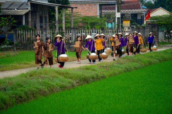 | Quãng diễn ký ức gánh bún ngày xưa của các mẹ, các mệ trên cánh đồng |
