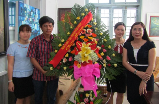 Thừa ủy quyền lãnh đạo thành phố Huế, bà Trần Hải Yến - Phó Ban Tuyên giáo thành ủy Huế tặng hoa chúc mừng Tạp chí Sông Hương |