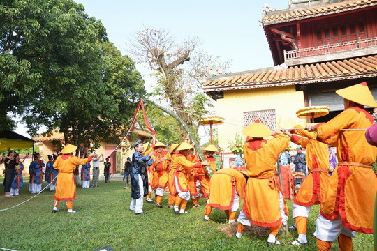 Sáng ngày 17/01 (tức 23 tháng Chạp Âm lịch), Trung tâm Bảo tồn Di tích Cố đô Huế tổ chức tái hiện nghi lễ Thướng Tiêu (Dựng Nêu) tại sân trước Hiển Lâm Các – Thế Miếu, Đại Nội Huế và tại Điện Long An (Bảo tàng Cổ vật Cung đình Huế).
