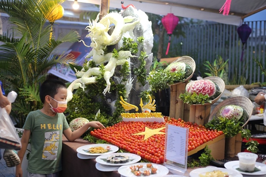 Bên cạnh các thực đơn ẩm thực đường phố đặc sắc, còn có các chương trình quảng diễn, trình bày, cắt tỉa, chế biến các món ẩm thực của các nghệ nhân nổi tiếng; các nghệ nhân thủ công mỹ nghệ trình bày cách làm các loại bánh pháp lam, bánh in phục linh, bánh tằm, các món quà lưu niệm đặc trưng của Huế,... tạo nên một không gian sinh động, phục vụ du khách thưởng lãm và trải nghiệm.
