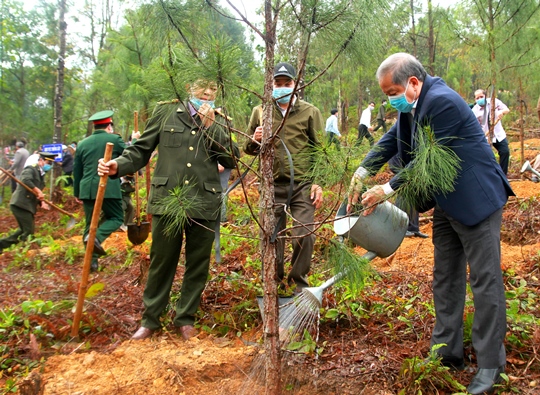 Lãnh đạo tỉnh và các lực lượng đã ra quân trồng mới 100 cây thông Caribe