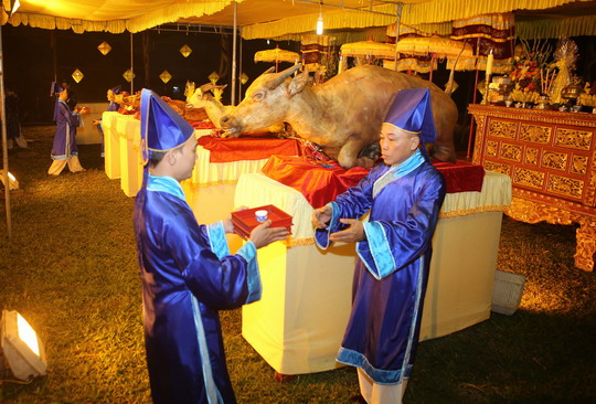 Sáng 2/2, Tại sảnh Điện Thái Hòa (Đại Nội Huế), Trung tâm Bảo tồn Di tích Cố đô Huế tổ chức tái hiện lễ Nguyên đán thời Nguyễn bằng hình thức sân khấu hóa.
