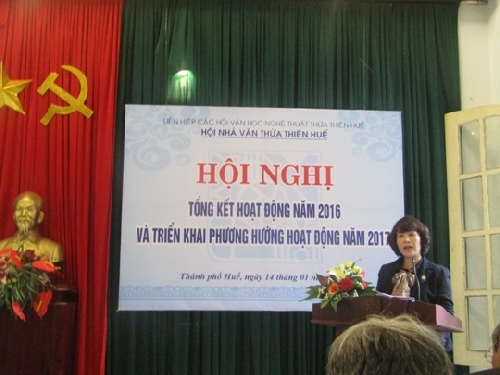 Vào lúc 15h00, ngày 14/01, Hội Nhà văn TT Huế đã tổ chức “Lễ tổng kết hoạt động năm 2016 và triển khai phương hướng hoạt động năm 2017” tại hội trường Liên hiệp các Hội Văn học Nghệ thuật TT Huế.