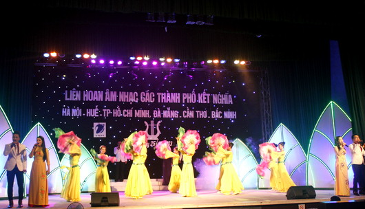 Tối ngày 25/3, tại Trung tâm Văn hóa Thông tin thành phố Huế, Liên hiệp các Hội VHNT TT - Huế phối hợp với Chi hội Nhạc sĩ Việt Nam tại Huế đã tổ chức Liên hoan âm nhạc các thành phố kết nghĩa bao gồm các tỉnh, thành phố: Hà Nội, Tp Hồ Chi Minh, Huế, Đà Nẵng, Cần Thơ và Bắc Ninh.
