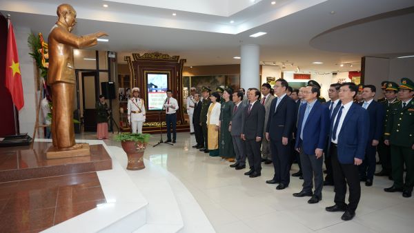 | Lãnh đạo thành phố dâng hoa lên Chủ tịch Hồ Chí Minh tại Bảo tàng Hồ Chí Minh thành phố Huế |