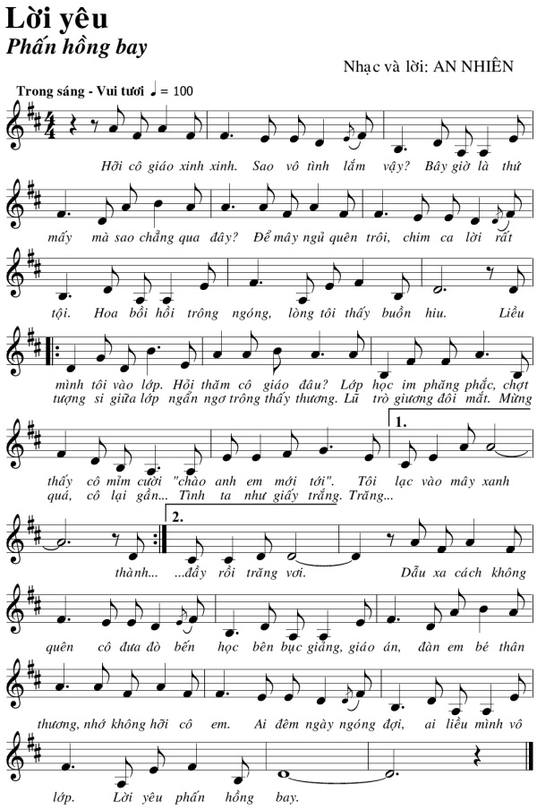 Nhạc: HỒ ĐÌNH PHỤC Lời thơ: HỒ ÁI TOÀN
