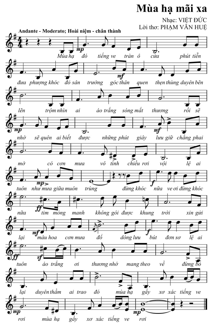 Nhạc: HỒ ĐÌNH PHỤC Lời thơ: HỒ ÁI TOÀN