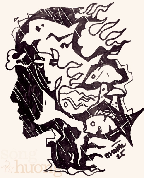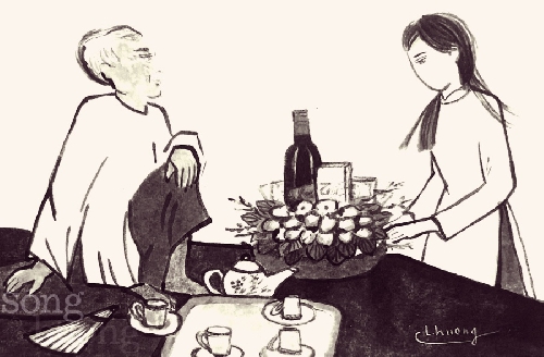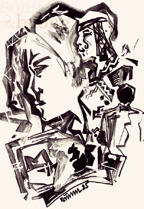 Tôi rờn rợn trong mình. Chắc Từ Thành cũng vậy. Thế ra người lạ này biết rõ công việc của chúng tôi. Y đến đây là có chủ đích chứ chẳng phải trú mưa nhờ gì cả. Y thuộc hạng người nào, một phần tử bất hảo hay một công chúng hâm mộ các tài năng nghệ thuật? Tôi và Từ Thành đều tự biết mình còn lâu mới thuộc cỡ nghệ sĩ có người hâm mộ mò tới nhà thăm vào đêm hôm mưa gió thế này. Vậy nhiều phần chắc y chỉ có thể là một kẻ rất đáng nghi ngại. Khốn nỗi cái tính nhẹ dạ của chúng tôi đã dẫn y vào nhà và trở thành khách nhậu mất rồi. -Rất hân hạnh cho cháu... - Y xoa tay, giọng nhỏ nhẹ, gương mặt bỗng trở nên trẻ trung lạ- đêm nay được hai bác cho uống rượu. Cháu xin được mời lại hai bác... Y mở khoá chiếc áo Natô cái rẹt, móc từ lần túi áo trong ra một chai rượu đặt lên bàn. Tôi chưa kịp nhìn rõ nhãn rượu, thì y đã tiếp: -Đây là chai rượu còn sót lại sau trận đại hồng thuỷ nhờ chiếc thuyền của ông Nôê.