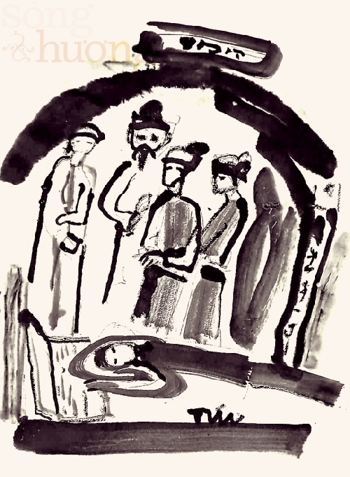 Một đêm mưa gió, tôi mò đến nhà ông, cắp theo cút rượu gạo vừa mua được nhờ món tiền bán cái truyện ngắn cho một tờ báo còm trong tỉnh. Chúng tôi cùng ngồi nhấm nháp rượu suông, nghe gió hú mưa gào, ngẫm về cái thân phận làm văn làm nghệ. Ông Từ Thành khịt mũi luôn, rồi nước mắt tuôn lã chã. Tạng ông vẫn thế, cứ có tí hơi men vào là lại khịt mũi, lại khóc. Đang giữa lúc bao nhiêu nông nỗi của cái kiếp văn kiếp nghệ ngấm vào tới tận xương tuỷ, thì bỗng nghe có tiếng gõ cửa. Ông Từ Thành giật mình cái thót, khẽ thì thào, đưa mắt nhìn ra cửa có vẻ sợ hãi. - Bình tĩnh!- Tôi đặt tay lên vai ông trấn an- Để tôi ra thử. Biết đâu lại là người muốn nhờ vả gì mình... Tiếng gõ cửa lại cất lên, có vẻ khẩn thiết. “Chờ một chút”. - Tôi nói to và bước tới thận trọng hé cánh cửa ghép bằng những tấm gỗ dỡ ra từ thùng chứa hàng. Một người không nhìn rõ mặt đứng bên ngoài nghiêng mình khẩn khoản. - Mưa to quá, xin ông làm ơn cho trú mưa một lát. Tôi quay lại bảo ông Từ Thành: “Tôi đoán không sai, ông ấy xin vào trú mưa nhờ”- và mở hẳn cửa. - Mời ông cứ tự nhiên!- Ông Từ Thành nói to.