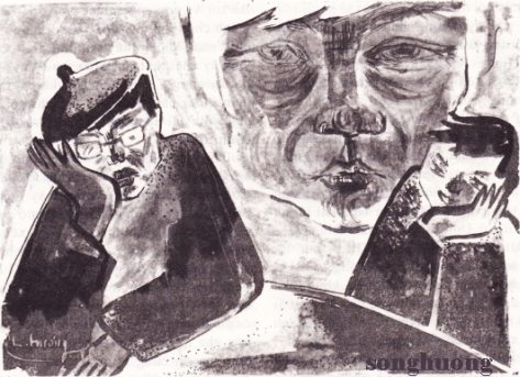 Tôi rờn rợn trong mình. Chắc Từ Thành cũng vậy. Thế ra người lạ này biết rõ công việc của chúng tôi. Y đến đây là có chủ đích chứ chẳng phải trú mưa nhờ gì cả. Y thuộc hạng người nào, một phần tử bất hảo hay một công chúng hâm mộ các tài năng nghệ thuật? Tôi và Từ Thành đều tự biết mình còn lâu mới thuộc cỡ nghệ sĩ có người hâm mộ mò tới nhà thăm vào đêm hôm mưa gió thế này. Vậy nhiều phần chắc y chỉ có thể là một kẻ rất đáng nghi ngại. Khốn nỗi cái tính nhẹ dạ của chúng tôi đã dẫn y vào nhà và trở thành khách nhậu mất rồi.