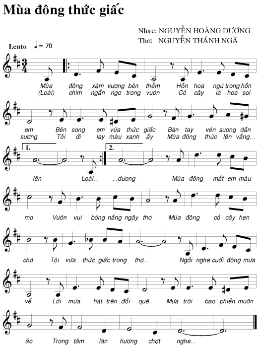 Nhạc và lời: NGUYỄN HOÀNG DƯƠNG