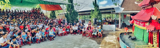 Không chỉ trẻ con háo hức mà cả những vị phụ huynh lớn tuổi cũng rất thích thú đón xem các tiết mục múa rối |
