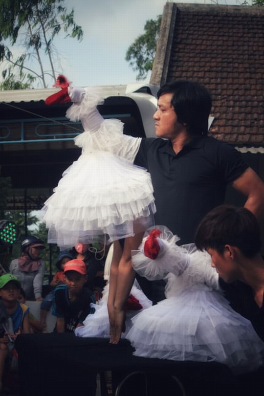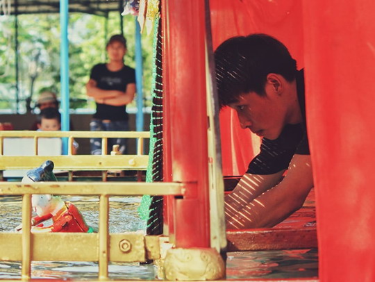 | Múa rối nước đòi hỏi người thợ phải yêu nghề và có sức khỏe tốt khi phải dầm nước điều khiển rối khá lâu |