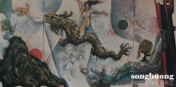 | Hình 4. Tác phẩm Rồng tiên, chất liệu tổng hợp, 310x157cm, 1995, tác giả Vĩnh Phối |