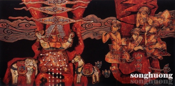 | Hình 7. Khúc Hương Bình, chất liệu sơn mài, 120x240cm, 2005, tác giả Nguyễn Thiện Đức |