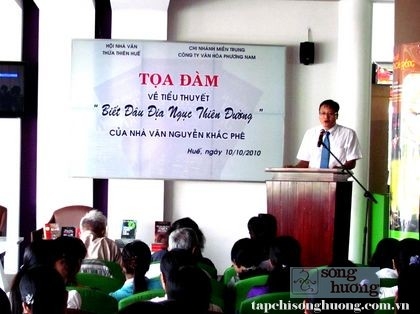 Chiều ngày 10/10, tại Café sách Phương Nam, số 15 Lê Lợi, Huế, Hội Nhà văn Thừa Thiên Huế phối hợp với Chi nhánh miền Trung Công ty Văn hóa Phương Nam tổ chức Tọa đàm về cuốn tiểu thuyết “Biết đâu địa ngục thiên đường” của nhà văn Nguyễn Khắc Phê.