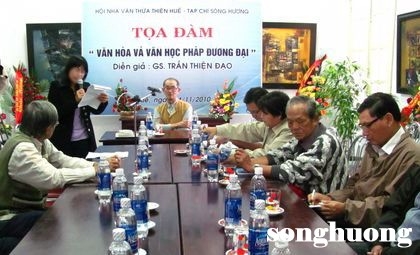 Chiều ngày 14/11, tại trụ sở Hội Liên hiệp VHNT Thừa Thiên Huế, Hội Nhà văn Thừa Thiên Huế phối hợp với Tạp chí Sông Hương tổ chức buổi tọa đàm với chủ đề “Văn hóa và văn học Pháp đương đại” do Giáo sư, dịch giả Trần Thiện Đạo trình bày.