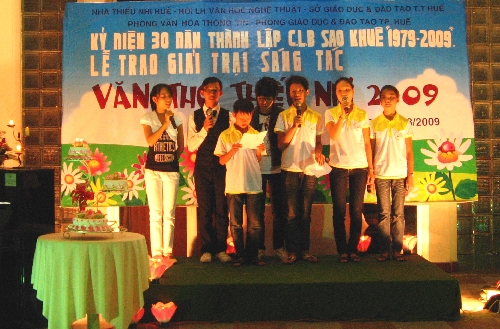 Tối ngày 8/8, tại Nhà Thiếu nhi Huế, Hội Liên hiệp Văn học Nghệ Thuật, Sở Giáo dục và Đào tạo- Thừa Thiên Huế, Phòng Văn hoá Thông tin, Phòng Giáo dục và Đào tạo - thành phố Huế cùng đơn vị sở tại đã phối hợp tổ chức kỷ niệm 30 năm thành lập Câu lạc bộ sáng tác văn học Sao Khuê (1979- 2009) và Trao giải sáng tác văn thơ thiếu nhi 2009.