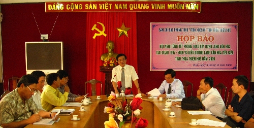 Chiều ngày 6/9, tại Sở Văn hoá, Thể thao và Du lịch, Ban chỉ đạo Phong trào “ Toàn dân đoàn kết xây dựng đời sống văn hoá” tỉnh Thừa Thiên Huế đã tổ chức họp báo về Hội nghị tổng kết Phong trào xây dựng làng văn hoá giai đoạn 1997-2009 và tuyên dương làng văn hoá tiêu biểu Thừa Thiên Huế năm 2009, Hội nghị sẽ diễn ra vào ngày 8/10 tại Trung tâm Văn hoá Thông tin tỉnh.