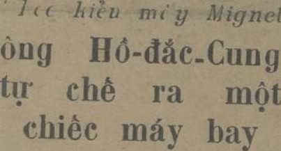 Từ 6 năm nay ông Cung giúp hãng chữa xe ô tô của ông Didier ở Saigon. Ngoài nghề chữa xe ô tô ông thích nhất nghề máy bay. Gần đây ông đi xem chớp bóng thấy ông Mignet chế ra được thứ máy bay nhỏ kêu là “rận trời” (pon du ciel), ông Cung liền phỏng theo kiểu đó mà làm một thứ máy bay mới. Hiện nay con “rận trời” của ông đã thành hình, chỉ còn thiếu bánh xe và động cơ nữa là có thể bay được. Những thứ ấy ông đã gửi mua ở bên Pháp. Cái động cơ 25 mã lực đó đáng giá 500$, cả tiền tàu chở về cũng tới 600 $. Khi có động cơ và bánh xe rồi, chỉ trong 15 ngày là ông Cung khởi sự thí nghiệm cuộc phi hành”.