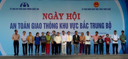 Cũng tại chương trình, UBND tỉnh Thừa Thiên- Huế trao tặng 18 phần quà (mỗi suất 1 triệu đồng) cho hộ gia đình nạn nhân TNGT có hoàn cảnh đặc biệt khó khăn trên địa bàn tỉnh. Ủy ban ATGT Quốc gia trao 1.000 MBH đạt chuẩn cho nghiệp đoàn xe thồ, xích lô và người lao động… trên địa bàn tỉnh Thừa Thiên- Huế. Công ty Honda Việt Nam tổ chức các hoạt động tuyên truyền pháp luật ATGT, hướng dẫn kỹ năng lái xe an toàn và thay nhớt xe miễn phí.