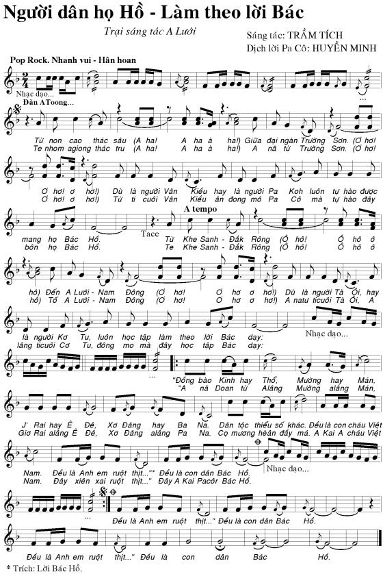 Nhạc: VIỆT ĐỨC Lời thơ: PHẠM VĂN HUỆ