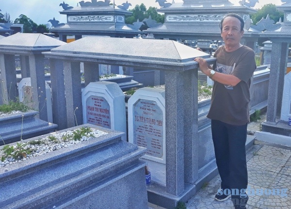 | Tác giả bên mộ vợ chồng nhà văn Nhất Linh ở nghĩa trang Cao Đài, Hội An, Quảng Nam |