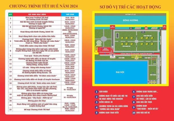 Chương trình Tết Huế với chủ đề “Gắn kết yêu thương” sẽ diễn ra trong 5 ngày, từ ngày 1 - 5/2 (nhằm ngày 22 - 26 tháng chạp, năm Quý Mão) tại Quảng trường Ngọ Môn (khu vực tiếp giáp cửa Quảng Đức), đường 23/8 và đường Lê Huân, phường Thuận Hòa, TP. Huế.