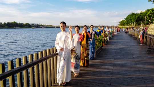 Trong chuỗi hoạt động của “Ngày hội áo dài Huế 2022”, hưởng ứng tuần lễ Festival Huế 2022, ngày 21 và 22/Sở Văn hóa Thể thao đã tổ chức hoạt động quảng diễn áo dài ở khu vực cầu bán nguyệt ở bờ Bắc sông Hương và cầu gỗ lim ở bờ Nam sông Hương.